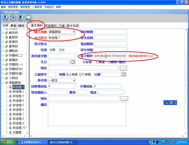 (四)教務管理-學生基本資料:新增小朋友資料 (基本資料- 班級 , 中文姓名 , 電子郵件)
