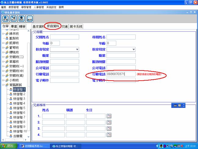 (五)教務管理-學生基本資料:新增家庭資料 - 行動電話