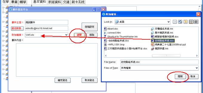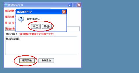 (七)填入 簡訊帳號 , 簡訊密碼 , 發送者 , 發送對象(選擇班級, 欲發送對象 ) , 發送內容